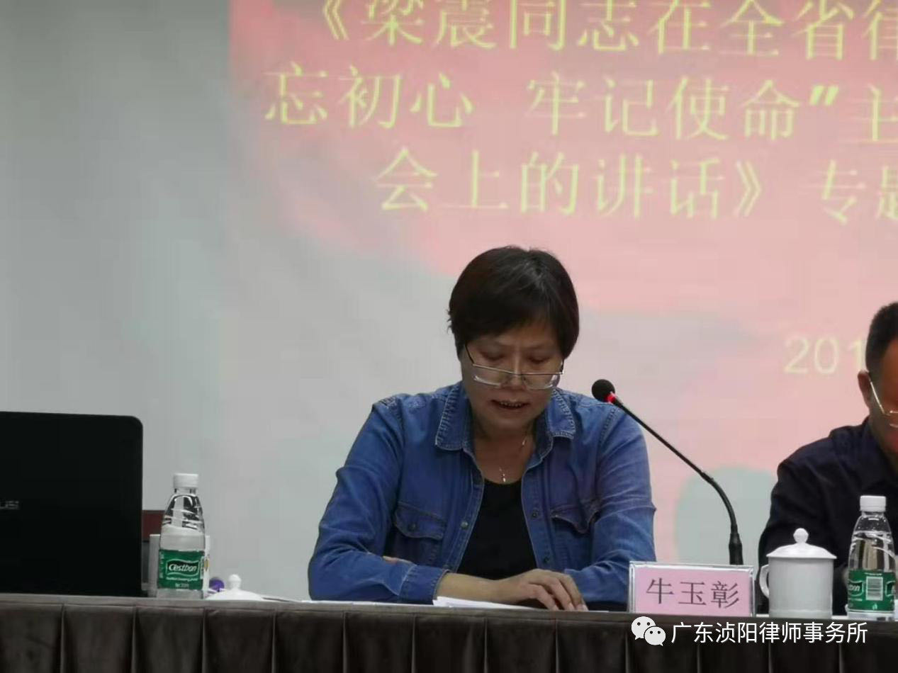 牛玉彰主任传达了省司法厅党组副书记、副厅长,省律师行业党委书记梁震在“不忘初心、牢记使命”主题教育汇报会精神。